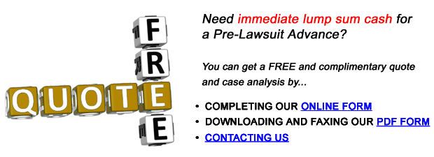 When arranging a Pre-Lawsuit Settlement Advance, we require only a non-recourse statutory lien with no credit checks, monthly payments, notes, or other security required!